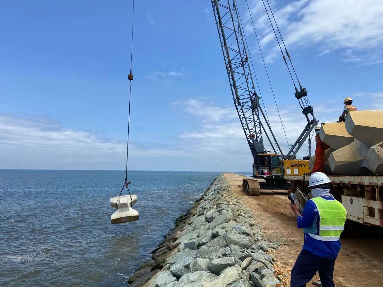 卡約新港口項(xiàng)目位于安哥拉卡賓達(dá)省,由中國進(jìn)出口銀行提供買方信貸資金,由中國路橋工程有限責(zé)任公司以EPC總承包方式實(shí)施。項(xiàng)目包括新建深水港口工程、港口設(shè)備的采購,以及與港口港區(qū)配套的自貿(mào)區(qū)及相關(guān)設(shè)施建設(shè)。港口工程的主要部分是在近岸水域新建一個(gè)離岸式700米長的集裝箱和散雜貨碼頭,背后形成吹填堆場,還包括引堤、引橋和陸域設(shè)施,形成了一個(gè)功能齊全的大型深水港口,設(shè)計(jì)年吞吐量達(dá)580萬噸。王棟表示,卡約新港口項(xiàng)目已完成超過40%的工程,預(yù)計(jì)將于2025年年底竣工。這個(gè)項(xiàng)目不僅代表著中國企業(yè)的高水平工程實(shí)施,還體現(xiàn)了中安兩國在“一帶一路”框架下的密切合作。