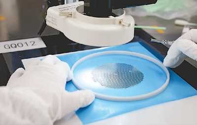福建省福州高新技術(shù)產(chǎn)業(yè)開發(fā)區(qū)一芯片生產(chǎn)車間,工作人員在檢測(cè)芯片產(chǎn)品。