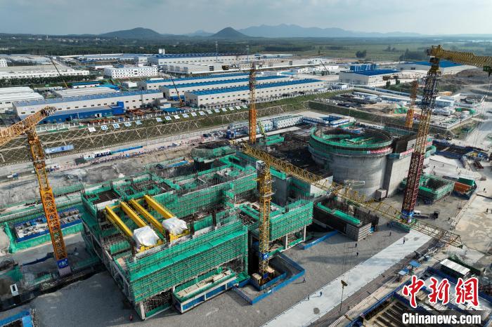 圖為航拍全球首個開工建設(shè)的陸上商用模塊化小型反應(yīng)堆“玲龍一號”。海南核電有限公司供圖
