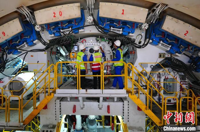 圖為國內(nèi)高鐵隧道最大直徑盾構(gòu)機(jī)始發(fā)掘進(jìn)準(zhǔn)備工作。劉福昌 攝