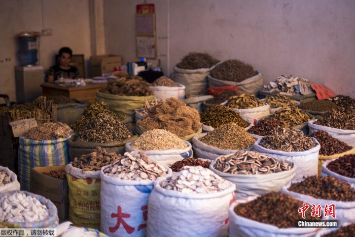 2015年6月21日,中國(guó)廣西玉林市一市場(chǎng)上出售的各種中藥材。