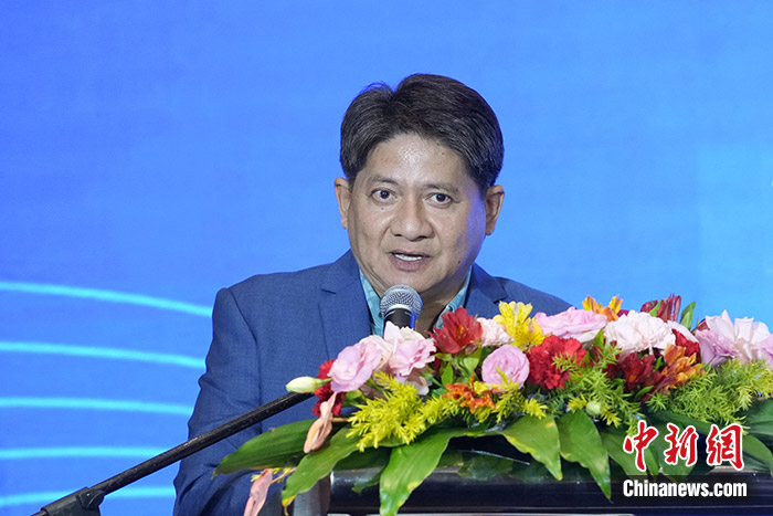 圖為菲律賓總統(tǒng)減貧顧問拉里·加頓致辭。 中新社發(fā) 蔣雨峰 攝