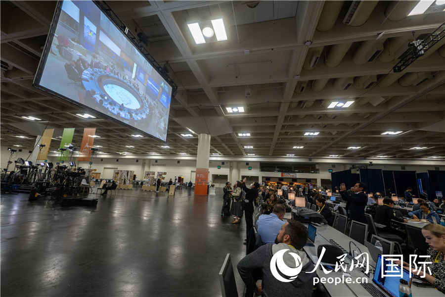 當(dāng)?shù)貢r(shí)間11月16日,美國舊金山,在APEC國際媒體中心,媒體記者忙碌工作。