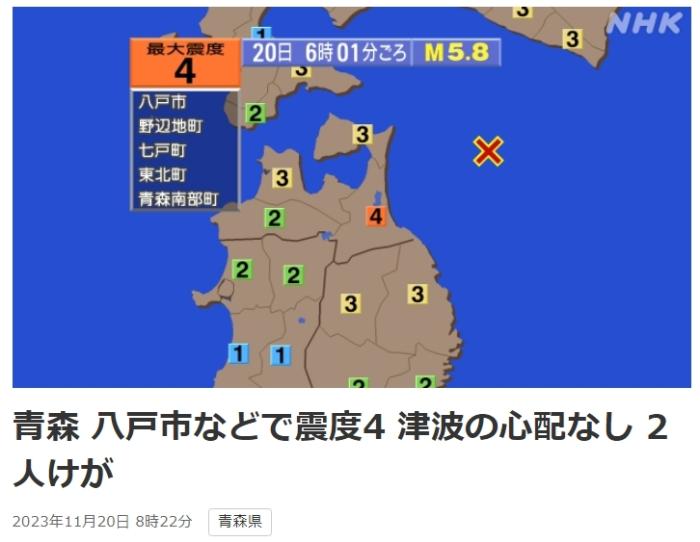 日本青森縣近海發(fā)生5.8級(jí)地震致2人傷 對(duì)核電站影響仍在確認(rèn)