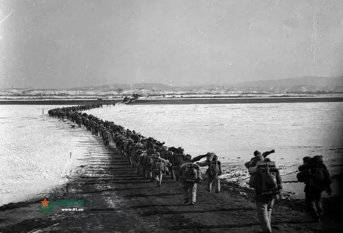 1950年冬,中國人民志愿軍跨過鴨綠江。圖片來源:中國軍網