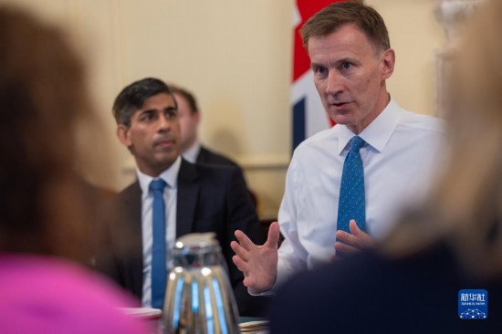 11月22日,在英國(guó)倫敦,英國(guó)財(cái)政大臣杰里米·亨特在公布秋季預(yù)算案前舉行的內(nèi)閣會(huì)議上發(fā)言。新華社發(fā)(英國(guó)首相府供圖)