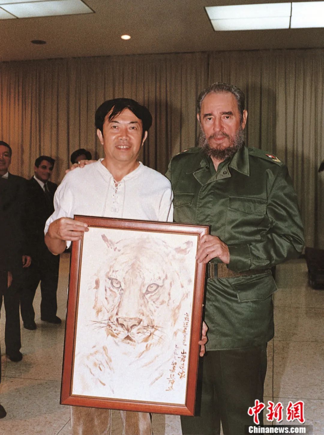 袁熙坤將代表作《山君造像》贈(zèng)與古巴革命領(lǐng)袖菲德爾 卡斯特羅。受訪者供圖