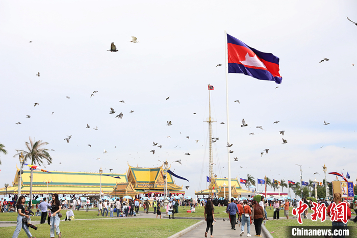圖為送水節(jié)首日熱鬧非凡的金邊皇宮廣場。 中新社發(fā) 黎海月 攝