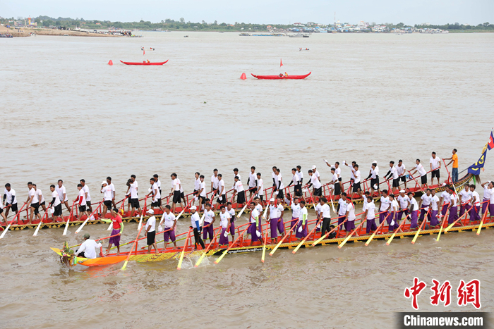 圖為送水節(jié)首日金邊市大型龍舟比賽。 中新社發(fā) 黎海月 攝