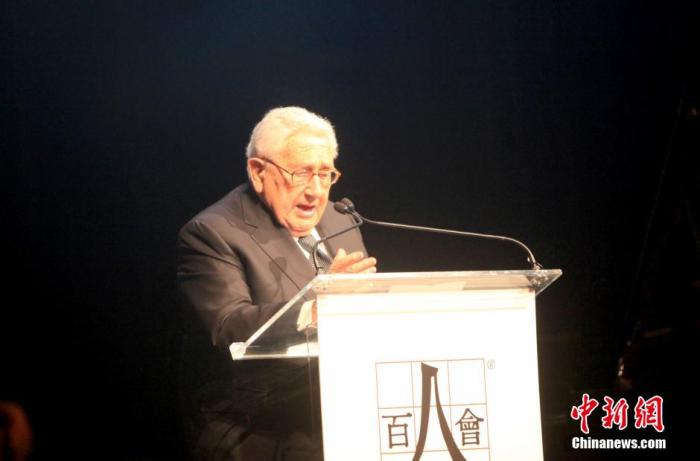 資料圖:美國前國務(wù)卿基辛格出席在紐約舉行的美國百人會成立25周年頒獎晚宴并發(fā)表演講。中新社發(fā) 阮煜琳 攝