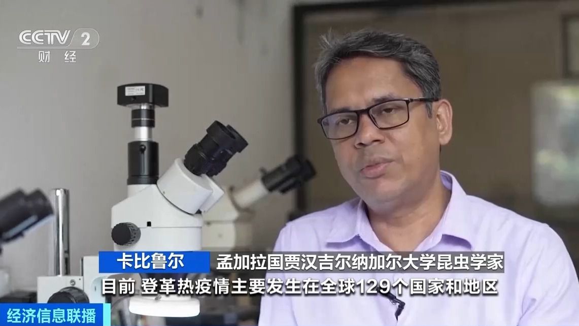 孟加拉國賈漢吉爾納加爾大學昆蟲學家 卡比魯爾:目前,登革熱疫情主要發(fā)生在全球129個國家和地區(qū),其中大多數(shù)國家都位于熱帶和亞熱帶,這些國家容易受到氣候變化的影響。(央視財經(jīng))