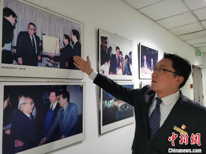 12月1日,南園賓館副總經(jīng)理羅浩介紹1994年基辛格訪問蘇州時在南園賓館的故事。 中新社記者 鐘升 攝