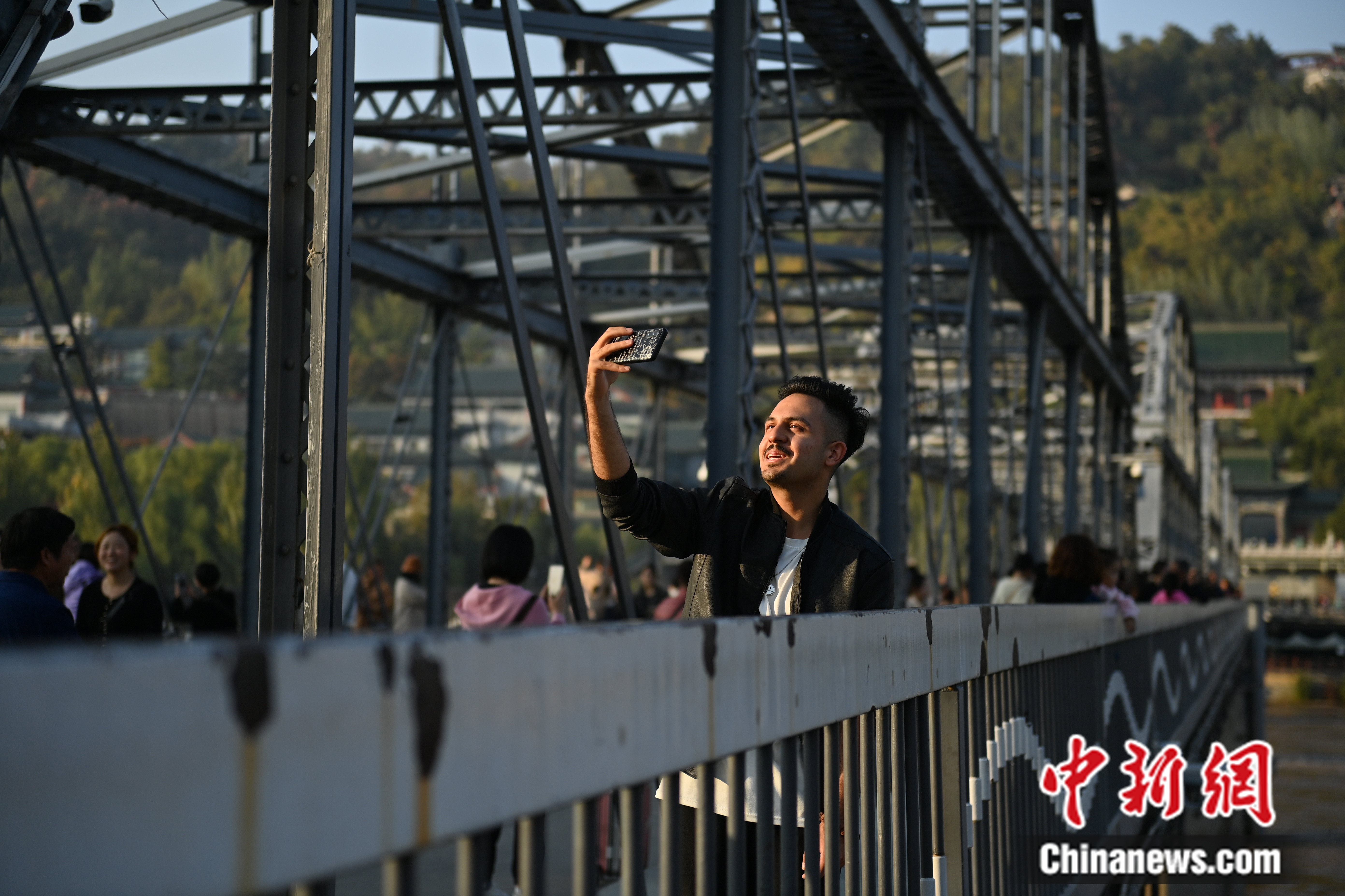 “這里是蘭州的著名景點(diǎn)——中山橋,有一百多年的歷史,到現(xiàn)在還能正常通行呢?!迸说显谔m州地標(biāo)性建筑“蘭州黃河鐵橋”上,一邊行走,一邊用手機(jī)記錄。他將自己在中國(guó)旅行中遇到的美景、見(jiàn)聞也上傳到社交賬號(hào)平臺(tái)上,希望能讓更多人能感受到中國(guó)的魅力。