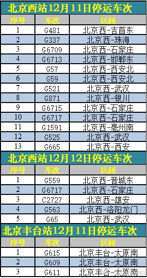 中新網(wǎng)12月11日電 據(jù)北京西站官方微博消息,受降雪影響,12月11日、12月12日北京西站、北京豐臺(tái)站部分列車停運(yùn),已購買停運(yùn)列車車票的旅客,可于30日內(nèi)辦理全額退票手續(xù)。請(qǐng)廣大旅客合理安排出行,關(guān)注鐵路部門公告。