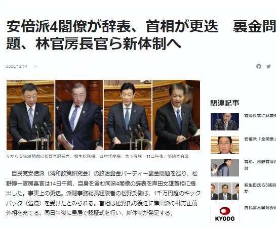 此前報(bào)道,隨著日本自民黨安倍派“吃回扣”丑聞持續(xù)發(fā)酵,首相岸田文雄已決定在14日大幅調(diào)整內(nèi)閣人事。