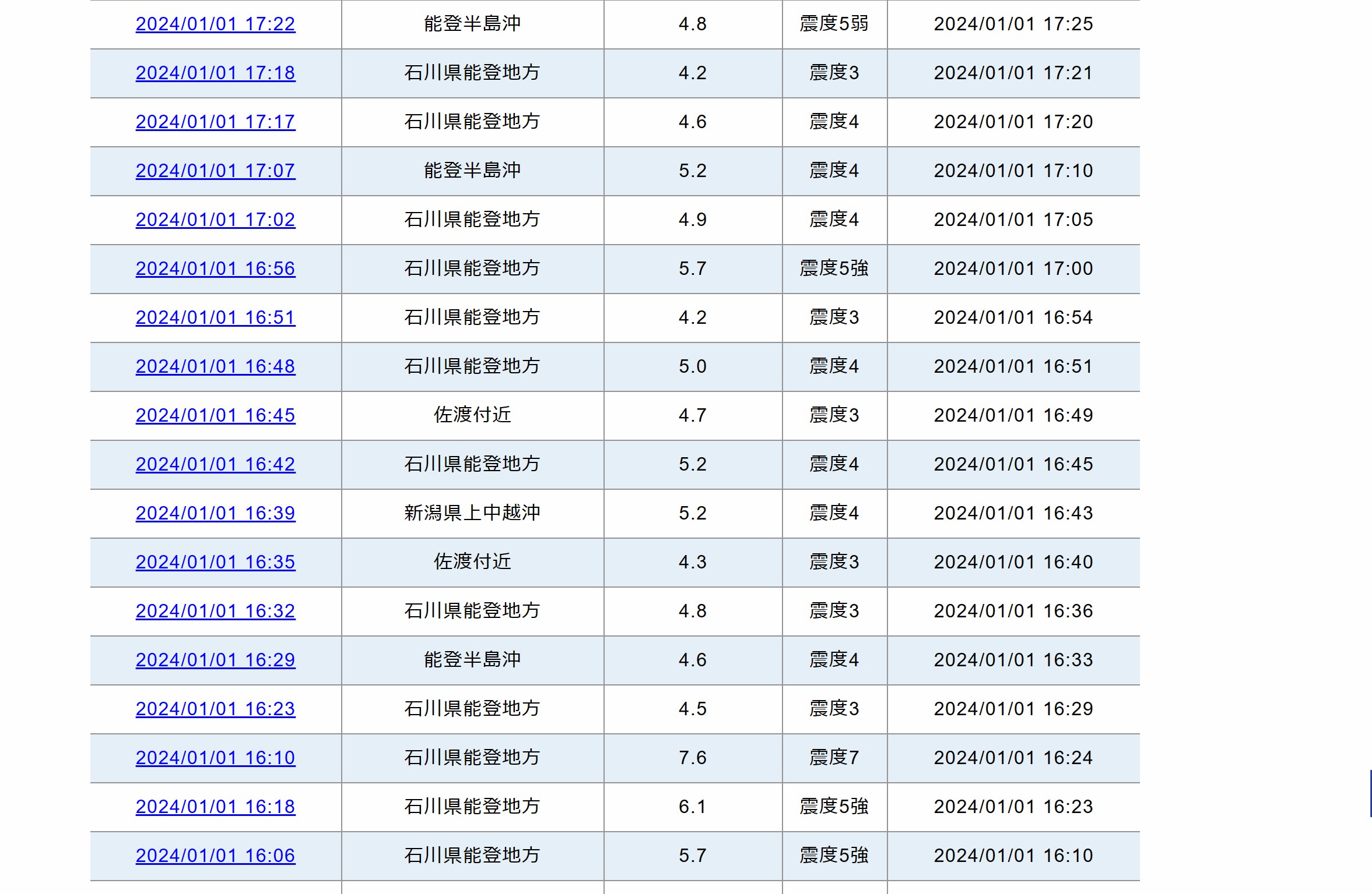 當(dāng)?shù)貢r間16時06分至17時22分期間,石川縣能登地區(qū)附近發(fā)生至少15次地震,地震震級均在4級以上,其中至少有7次在5級以上。