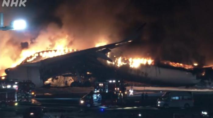 日本羽田機(jī)場(chǎng)跑道封鎖 起火客機(jī)全員撤離,另一飛機(jī)5人失聯(lián)