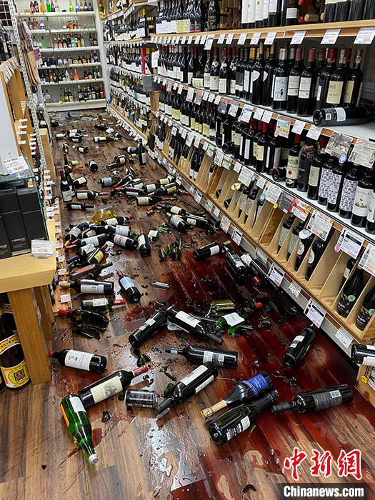 圖為1月1日,石川縣金澤市一家超市內酒類貨架上的商品因地震散落、破碎。 中新社發(fā) 鐘欣 攝