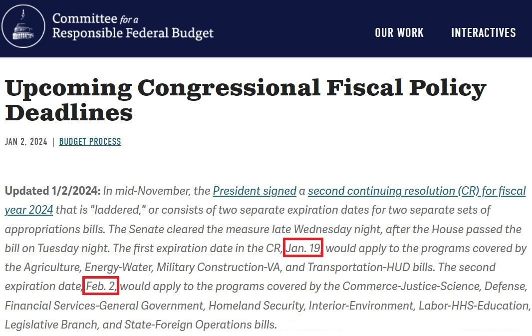為避免政府停擺,美國(guó)國(guó)會(huì)去年11月通過一項(xiàng)“分段式”短期撥款法案,為大約20%的聯(lián)邦政府機(jī)構(gòu)撥款至今年1月19日,為另外大約80%的機(jī)構(gòu)撥款至2月2日。