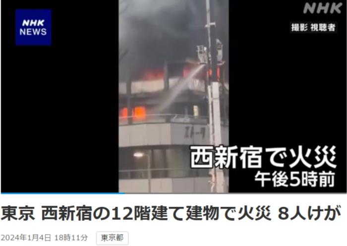 中新網(wǎng)1月4日電 據(jù)日本廣播協(xié)會(NHK)報道,當(dāng)?shù)貢r間1月4日傍晚,日本東京新宿區(qū)的一棟12層建筑發(fā)生火災(zāi),現(xiàn)場火光沖天濃煙滾滾,目前已致8人受傷。