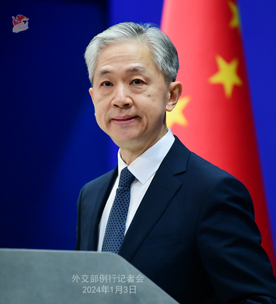 中新網(wǎng)北京1月3日電 (謝雁冰)中國外交部發(fā)言人汪文斌1月3日主持例行記者會。