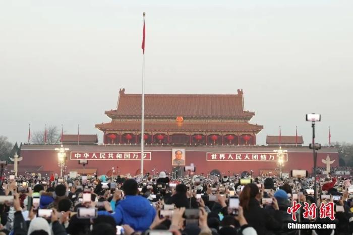2024年1月1日晨,北京天安門廣場(chǎng)舉行隆重的升國(guó)旗儀式。中新社記者 蔣啟明 攝