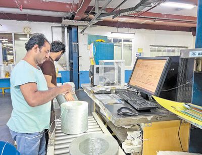 在位于巴林穆哈拉格島南部的巴林國際投資園區(qū),重慶國際復(fù)合材料阿巴桑玻璃纖維有限公司的工人在車間內(nèi)忙碌。 本報記者 張志文攝