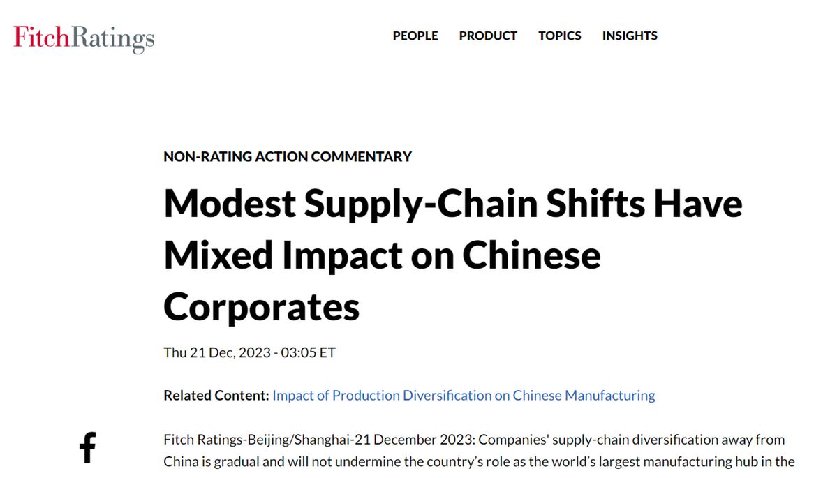 《華爾街日?qǐng)?bào)》的觀察與惠譽(yù)評(píng)級(jí)公司最近的一份報(bào)告相呼應(yīng)。該報(bào)告稱,在貿(mào)易壁壘和地緣政治緊張局勢(shì)加劇背景下,全球性企業(yè)和中資企業(yè)都在推進(jìn)供應(yīng)鏈多元化。不過,產(chǎn)能外遷規(guī)模仍然有限,且集中在低技能的組裝和量產(chǎn)領(lǐng)域,如紡織、服裝和鞋類。