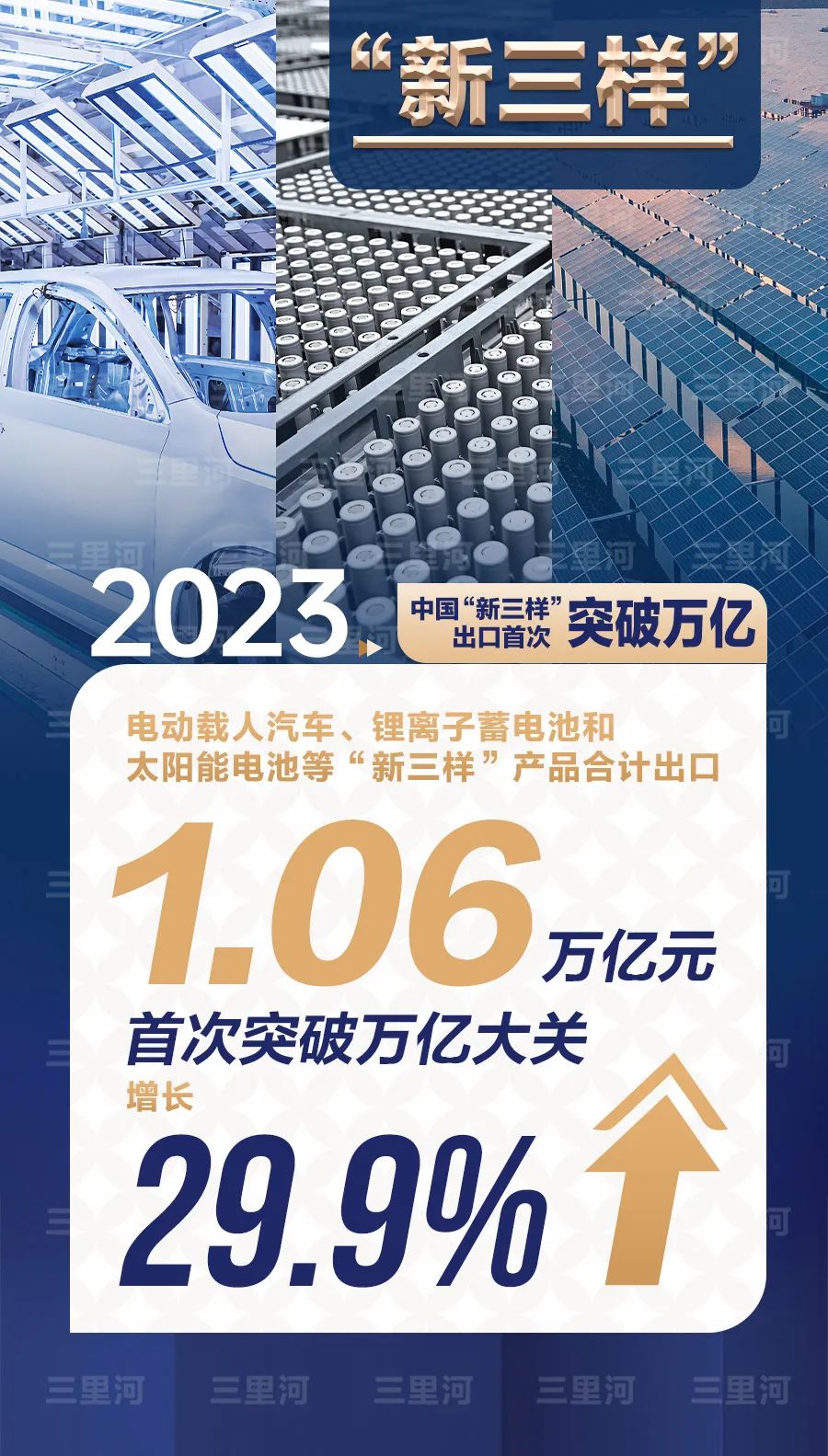 活力來自新動能——制造業(yè)技改投資增長3.8%,高技術產(chǎn)業(yè)投資增長10.3%,快于全部固定資產(chǎn)投資的增速。2023年電動載人汽車、鋰電池和太陽能電池等“新三樣”產(chǎn)品合計出口1.06萬億元,首次突破萬億大關。中國經(jīng)濟在加快培育新質生產(chǎn)力中不斷發(fā)展壯大。