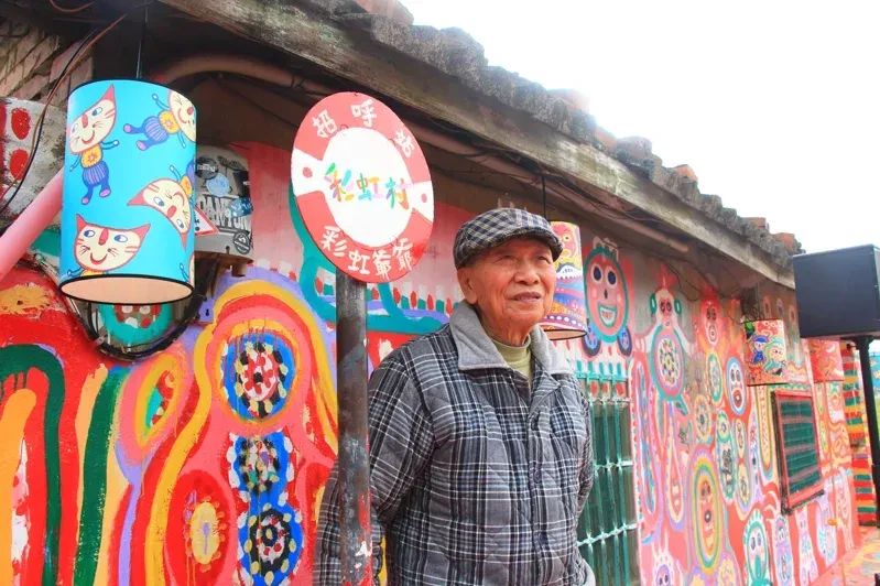 如今,彩虹眷村不僅是許多臺(tái)灣游客到訪臺(tái)中的必游景點(diǎn),更紅到了海外。國(guó)際知名旅游指南《孤獨(dú)星球》將其列為全球值得探訪的景點(diǎn)之一,每年吸引大量游客到訪打卡。走紅后的黃永阜依舊在村里作畫(huà),碰上到訪游客,他愿意互動(dòng)合影,深受民眾歡迎。