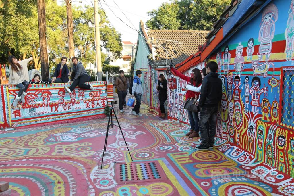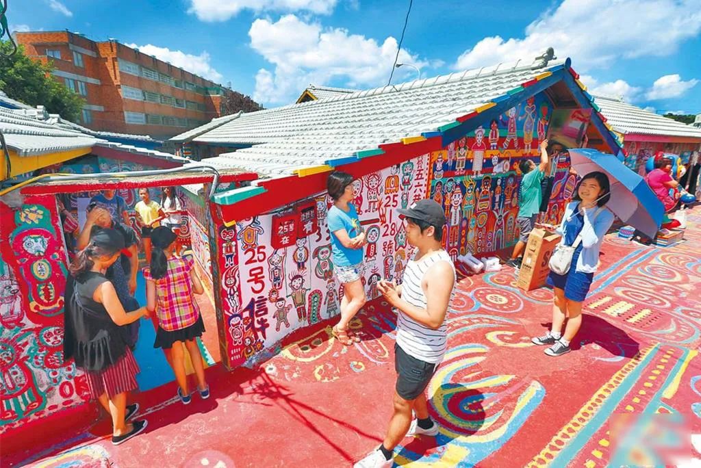 五彩繽紛、充滿童趣的畫(huà)風(fēng)讓老舊眷村增添了生機(jī),每逢節(jié)假日,大量民眾前來(lái)參觀打卡。圖片來(lái)源:中時(shí)新聞網(wǎng)