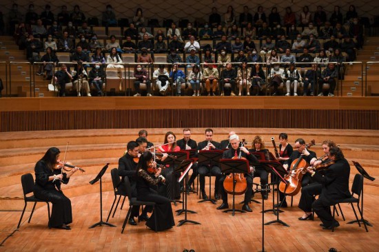 這是2023年11月16日拍攝的音樂(lè)會(huì)現(xiàn)場(chǎng)。當(dāng)日,“費(fèi)城之約”——費(fèi)城交響樂(lè)團(tuán)與蘇州交響樂(lè)團(tuán)室內(nèi)樂(lè)音樂(lè)會(huì)在江蘇蘇州舉行。新華社記者 李博 攝
