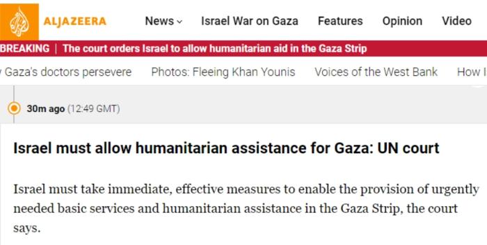國(guó)際法院命令以色列允許人道主義援助進(jìn)入加沙,并表示,以色列必須“在其權(quán)力范圍內(nèi)采取一切措施,防止并懲罰直接和公開煽動(dòng)實(shí)施種族滅絕的行為”。