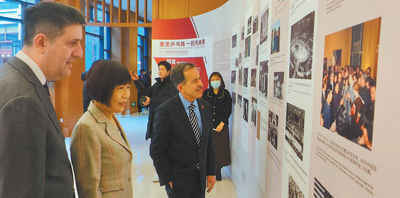 1月6日,弗吉尼亞大學(xué)代表團在清華大學(xué)參觀中美“乒乓外交”圖片展。