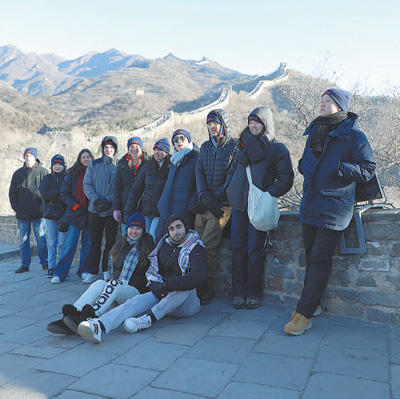 1月7日,弗吉尼亞大學(xué)代表團成員在八達嶺長城合影留念。