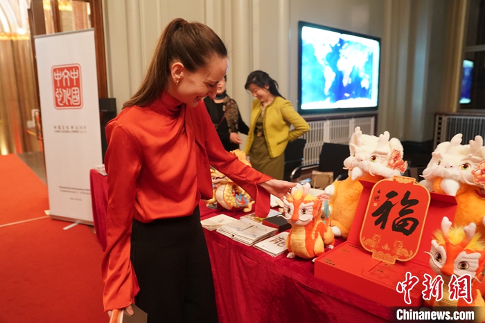 柏林中國文化中心還在現場設置了文化展臺,向來賓展示來自中國的精美文創(chuàng)藝術品和文化旅游推廣品,龍年的“吉祥龍”深受來賓喜愛。