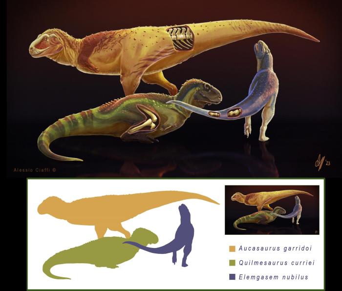在本項研究中,論文第一作者兼通訊作者、香港中文大學(xué)和阿根廷國立內(nèi)格羅河大學(xué)Mattia A. Baiano與同事及合作者一起,利用計算機(jī)斷層掃描(CT)和骨骼組織學(xué)分析,研究了3組獸腳類恐龍的化石遺骸——分別來自加氏奧卡龍、迷霧嚙王龍和柯氏基爾梅龍,它們均生活在白堊紀(jì)晚期(距今約9000萬至7000萬年前)的南美洲。3個物種均為阿貝力龍科的獸腳類恐龍,這類恐龍的典型特征是前肢極短,頭骨深且有力并常生有冠、角等骨質(zhì)裝飾部位。