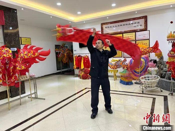 史克濱正在舞“彩帶龍”。李韻涵 攝
