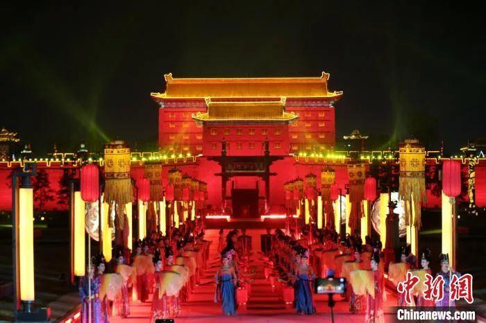 圖為《夢(mèng)長(zhǎng)安——大唐迎賓盛禮》現(xiàn)場(chǎng)。 張遠(yuǎn) 攝