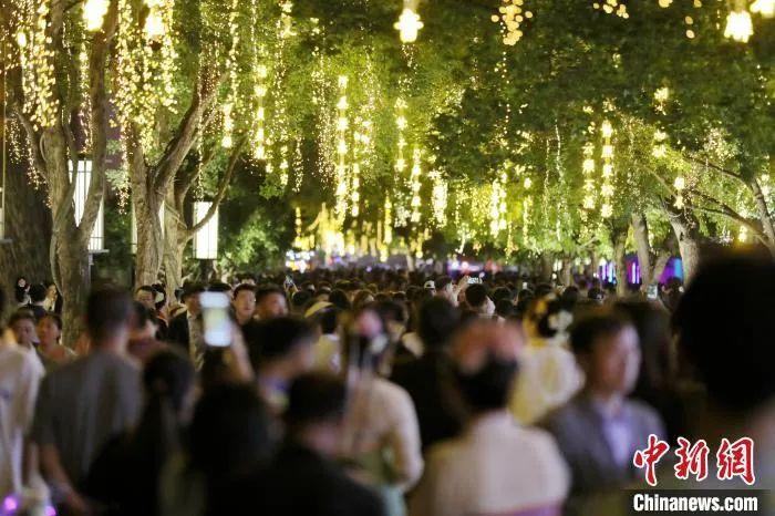 圖為西安大唐不夜城游人如織。 張遠(yuǎn) 攝