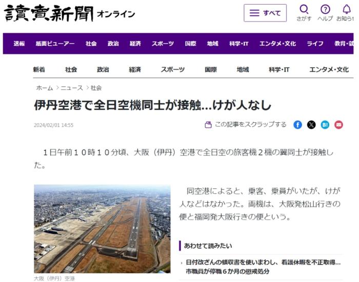 據(jù)介紹,兩架客機均屬于全日空航空公司,分別是大阪飛往松山以及福岡飛往大阪的航班。