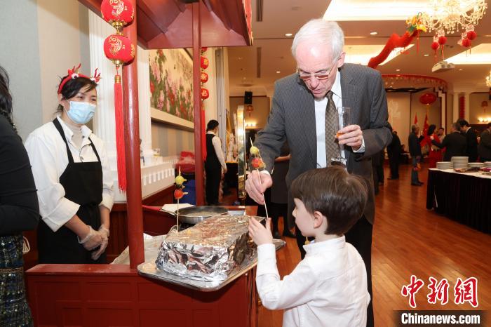 當(dāng)?shù)貢r間2月1日晚,加拿大首都渥太華,中國駐加拿大大使館舉行2024年春節(jié)招待會。圖為現(xiàn)場制作的中國風(fēng)味小吃冰糖葫蘆吸引來賓品嘗。中新網(wǎng)記者 余瑞冬 攝