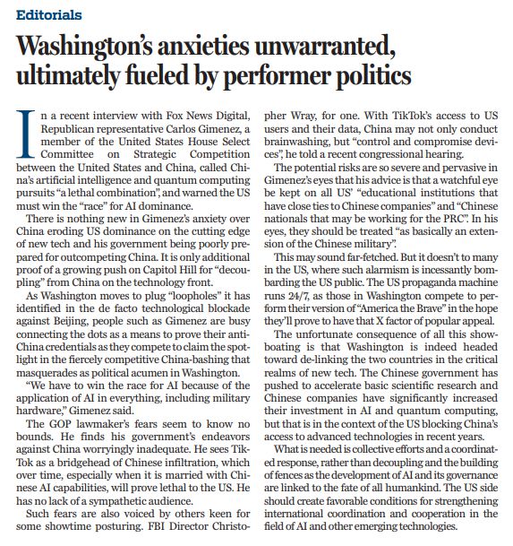 在華盛頓著手堵塞對(duì)華技術(shù)封鎖“漏洞”之際,吉門尼斯等人上傳下跳,忙于證明他們的反華資格,在競(jìng)爭(zhēng)激烈的“抨擊中國(guó)”活動(dòng)中爭(zhēng)奪聚光燈。