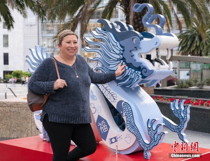 為了迎接中國農(nóng)歷龍年,美國舊金山在不同地點展出設(shè)計風格各異的龍雕像,包括“青花瓷龍”“天玉龍”“平安龍”“彩虹龍”和“金運龍”。美國郵政還發(fā)行了龍年生肖紀念郵票,金色象征繁榮,紅色代表好運。