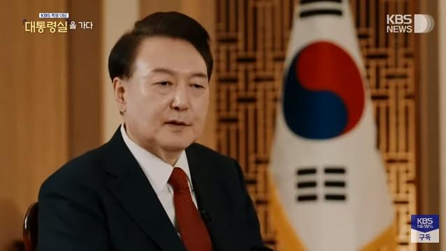 2月7日晚,韓國KBS電視臺第一頻道播出獨家訪談節(jié)目《特別訪談:走進總統(tǒng)府》,韓國總統(tǒng)尹錫悅回應其夫人金建希收受名牌皮包的爭議。圖片來源:KBS視頻截圖