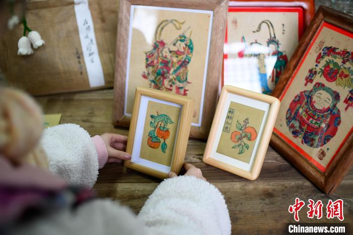 2月6日,國家級非遺梁平木版年畫推出相框版的《柿柿如意》。 中新社記者 何蓬磊 攝