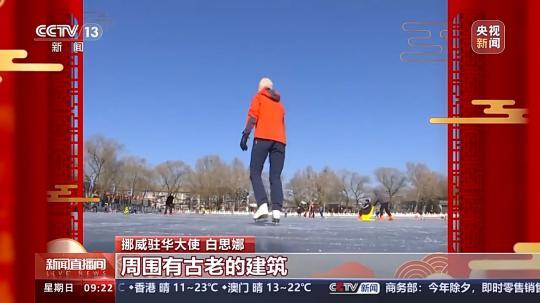 挪威駐華大使 白思娜:挪威人我們特別喜歡冬天,去爬山、滑冰、滑雪。我也很喜歡在這滑冰,因?yàn)檫@里是城市的中心,周圍有古老的建筑,很多人在一起滑冰。