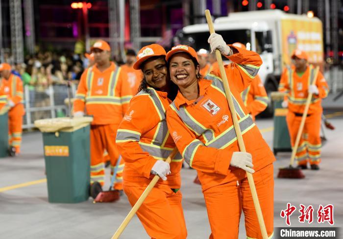 清潔工以方陣之姿踏入巴西圣保羅狂歡節(jié)冠軍隊收官巡演現(xiàn)場。記者林春茵攝