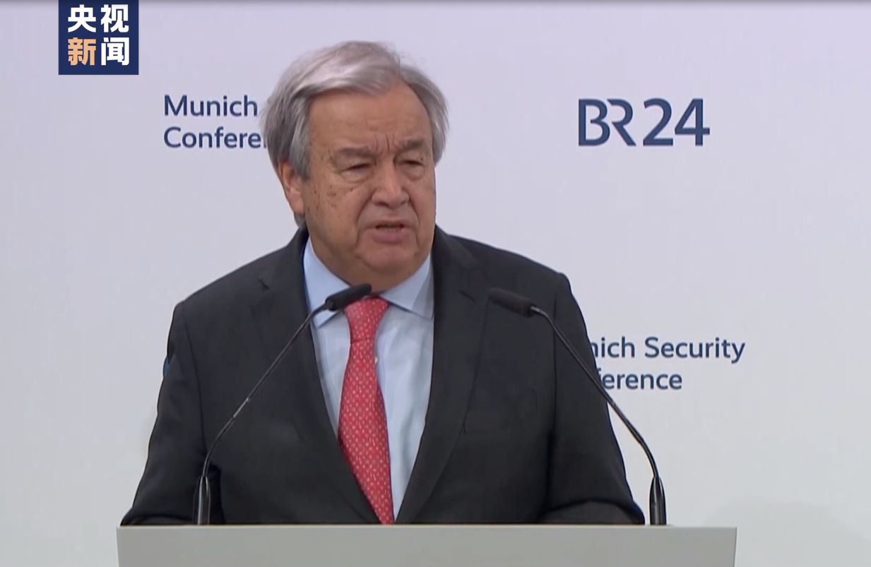△2月16日,聯合國秘書長古特雷斯在慕安會上發(fā)表開幕致辭(圖由總臺記者拍攝)