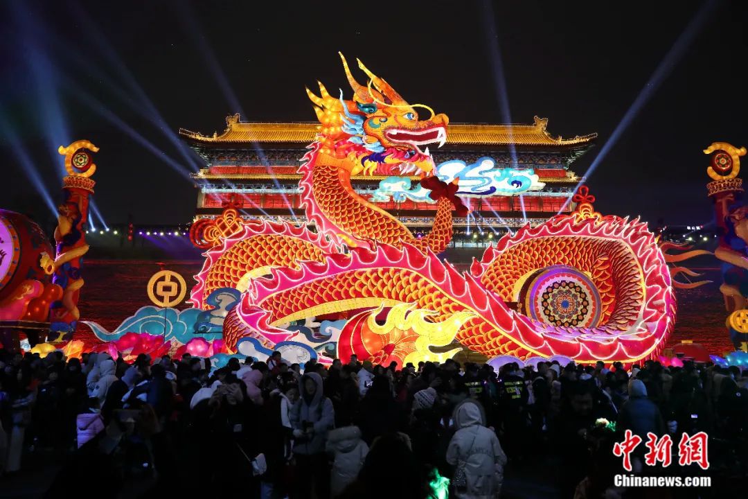 2024年2月,陜西西安,巨型龍燈亮相西安城墻第37屆新春燈會。張遠(yuǎn) 攝